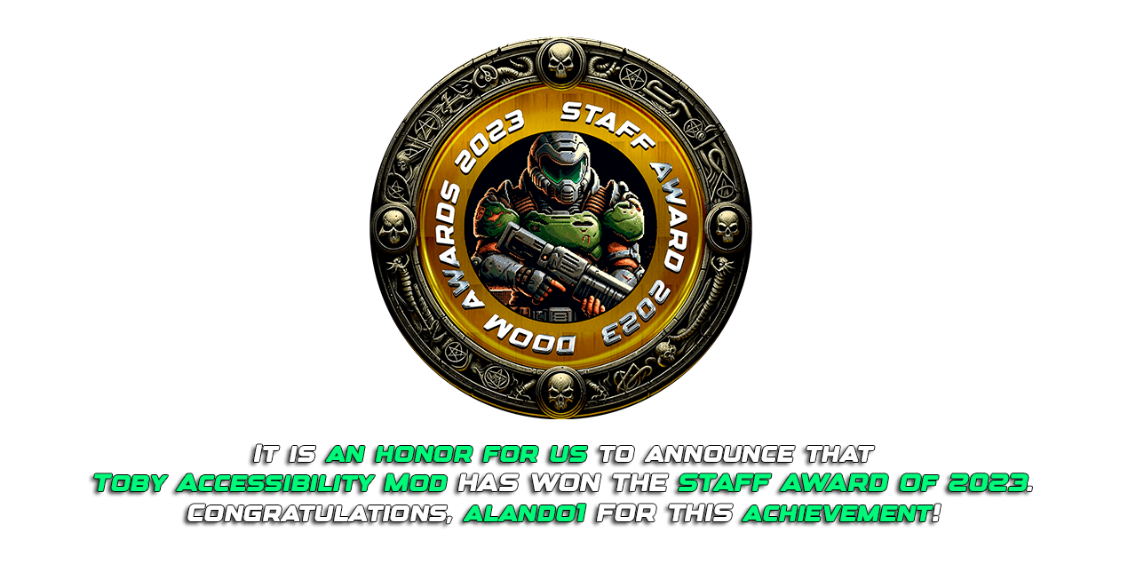 At the Doom Awards 2023, the selection of the Toby Accessibility Mod for the Staff Award underlines the importance we place on inclusivity and accessibility in gaming. It's not just about acknowledging technical prowess but celebrating initiatives that widen the gaming world for all.